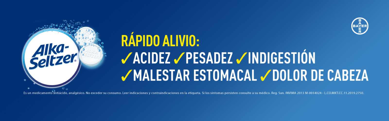 Alka-Seltzer® Original Bicarbonato de sodio, Ácido Cítrico, Ácido Acetilsalicílico 14 Tabletas efervescentes Reg. San. INVIMA 2022M-0014024-R1